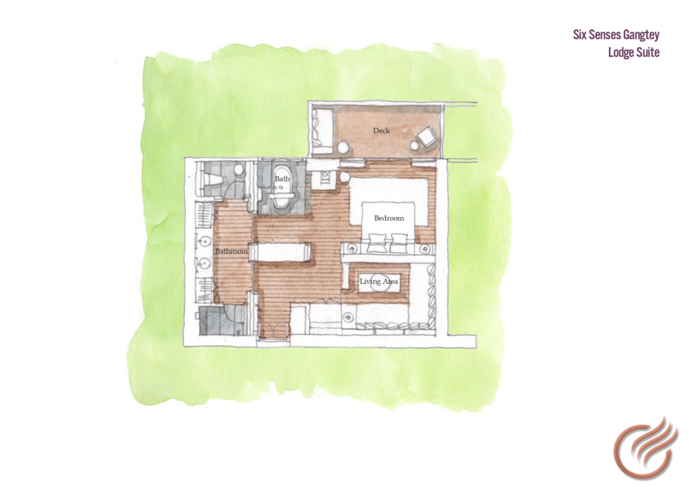 Lodge Suite (75 кв.м) — сьют с большим видом на долину, оформленный в традиционном стиле с местными материалами. План номера