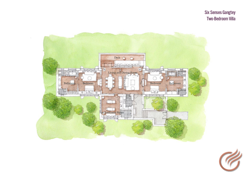 Two-Bedroom Villa (260 кв.м) — вилла с двумя спальнями, собственными зонами отдыха и отличным обзором природы. План номера