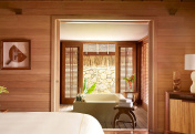 One-bedroom Mountain-view Overwater Bungalow Suite with Plunge Pool (104 кв.м) – терраса с персональным бассейном, гостиная, спальня с кроватью king-size, ванная комната с ванной и душевой ка-биной. Расположены на сваях над водой. Вид на горы. Размещение: 3 взр. или 2 взр. + 2 детей до 12 лет.