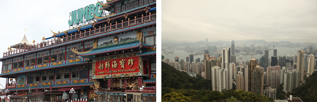 Времени отдохнуть после перелета у нас, к сожалению, нет – пора на обзорную экскурсию. Наша принимающая компания предоставила прекрасного гида Аллу, с которой мы начинаем наш тур с главной достопримечательности Гонконга – Пика Виктории. Это место, откуда открываются потрясающие виды на центральную часть Гонконга. Слушаем рассказ об архитектурных экспериментах (вот он – рай для архитекторов: прекрасная каменистая почва для строительства высотных и нестандартных зданий, сейсмическая безопасность, инвестиции и быстрая окупаемость). Не зря Норман Фостер построил здесь множество креативных «высоток». Интересен факт, что Пик Виктория служит местом встречи местных собаководов, которые всячески балуют своих питомцев (долгое время в Гонконге существовал запрет на содержание собак). Здесь же расположен магазин необычной электроники (можно, например, приобрести очки с видеокамерой (очень удобно – снимаешь то, куда смотришь) . Далее мы едем в Repulse Bay. По местным традициям загадываем желания и верим во всех и все: гладим животик Будде, бросаем монетку в пасть рыбке, гладим животик еще одному Будде денежкой, которую потом нельзя будет тратить (для финансового благополучия). Далее по программе - поездка в рыбацкую деревню на воде Абердин, где роскошные яхты соседствуют с дряхлыми баржами, на которых до сих пор живут целые семьи. Тем не менее Гонконг приятно радует отсутствием колющей глаз нищеты, так характерной для многих стран Юго-Восточной Азии. Здесь же расположен знаменитый ресторан Джамбо, к которому мы вернемся позже в нашем рассказе. В завершении экскурсии посещаем храм Ман Мо, где для поминании душ усопших используются поминальные «спирали». Они, медленно тлея, распространяют терпкий запах, который кажется европейцам слишком резким.