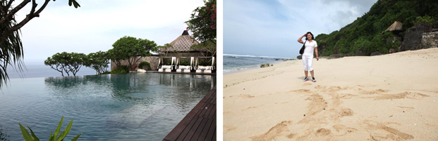 Едем в отель Ayana и после осмотра самого отеля посещаем Акватоник – комплекс бассейнов с морской водой. Чувствуем эффект даже от одной процедуры (рекомендуется провести курс минимум из 6 процедур). Несколько слов о самом отеле – большая красивая территория, живописное месторасположение, что несет и свои особенности: на пляж нужно спускаться по ступенькам (однако плавать там можно как в прилив, так и в отлив). Кроме того, оборудована зона с панорамным бассейном с морской водой, зонтиками и лежаками прямо среди скалистого берега. Номера соответствуют стандартам 5 *.