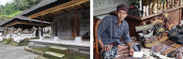 К сожалению, нам пора покидать нашу чудесное пристанище. Впереди нас ждут экскурсии. Начинаем с посещения деревни резчиков по дереву - одному из самых известных видов искусств и самого престижного ремесла на Бали. Искусство резчиков воистину восхищает - 5-метровые скульптурные композиции, высеченные из цельного куска дерева. Не можем уйти без покупок. Далее наш путь лежит к Усыпальницам Королей – на мой взгляд, обязательное для посещения место на Бали. Помимо действительно впечатляющего вида древних усыпальниц поражает рассказ о существовании настоящих привидений (и в них безоговорочно веришь, когда проходишь мимо древних храмов). Путь назад проходит через местных ремесленников-торговцев. Не купить что-либо не представляется возможным. Не скажу ничего нового - Бали действительно рай для покупок интерьерных вещиц. Не зря сюда приезжают дизайнеры со всего мира пополнить запасы своих сокровищниц. Большинство вещей делается вручную и стоит при этом не очень дорого.