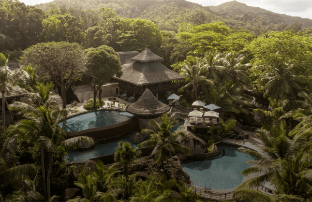 Сейшельские острова всегда считались частью легендарного потерянного континента Лемурии. Этот прекрасный уголок Земли является одним из самых идеальных мест для спокойного и безмятежного отдыха. Отель Constance Lemuria — настоящая жемчужина в ожерелье Сейшельских островов и по праву считается одним из самых лучших отелей. Отель удачно сочетает красоту бухты, высочайший уровень сервиса, разнообразные возможности для отдыха: SPA-центр, гольф и бесконечные пляжи с белоснежным песком… Что может быть лучше?! Constance Lemuria находится в бухте Anse Kerlan, на северо-западе острова Praslin. До аэропорта острова Пралин — всего пять минут. Отель раскинулся больше чем на 120 гектарах и имеет идеальное расположение. Качество и оригинальность этого прекрасного отеля соответствуют требованиям самых взыскательных клиентов, привыкших к высоким стандартам комфорта в гармонии с природной красотой. Главное здание отеля — уникальное сооружение из дерева и камня — расположено на холме. Живописный нестандартный бассейн имеет три уровня, которые каскадами от здания отеля спускаются к океану. Отель смотрится очень элегантно и органично вписывается в окружающий пейзаж, являясь его естественным дополнением. Океанская лагуна, три великолепных пляжа с белым песком, подводные пейзажи, обилие редких морских рыб и зеленые холмы вокруг отеля, покрытые буйной растительностью, в том числе редких видов, воплощают образ рая на Земле и делают отдых незабываемым.