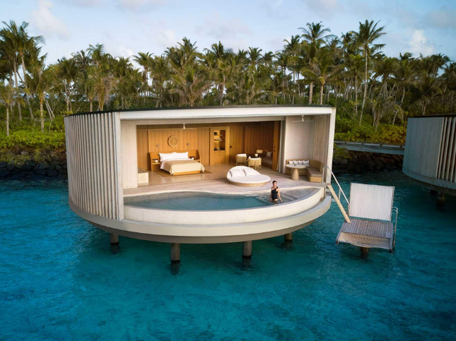 На острове 100 вилл, расположенных на пляже или над лагуной. Все виллы – с приватными бассейнами.